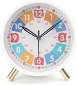 The colorful dial is specially designed for kids' time learning. Via different colors, it is easier for children to recognize hours, minutes and seconds. This alarm clock for kids is quiet and does not make annoying ticking sound. It is suitable for children who are sensitive while sleeping. With the simple design, it is very easy to set time and alarm, turn on/off the alarm, and light up the backlight.